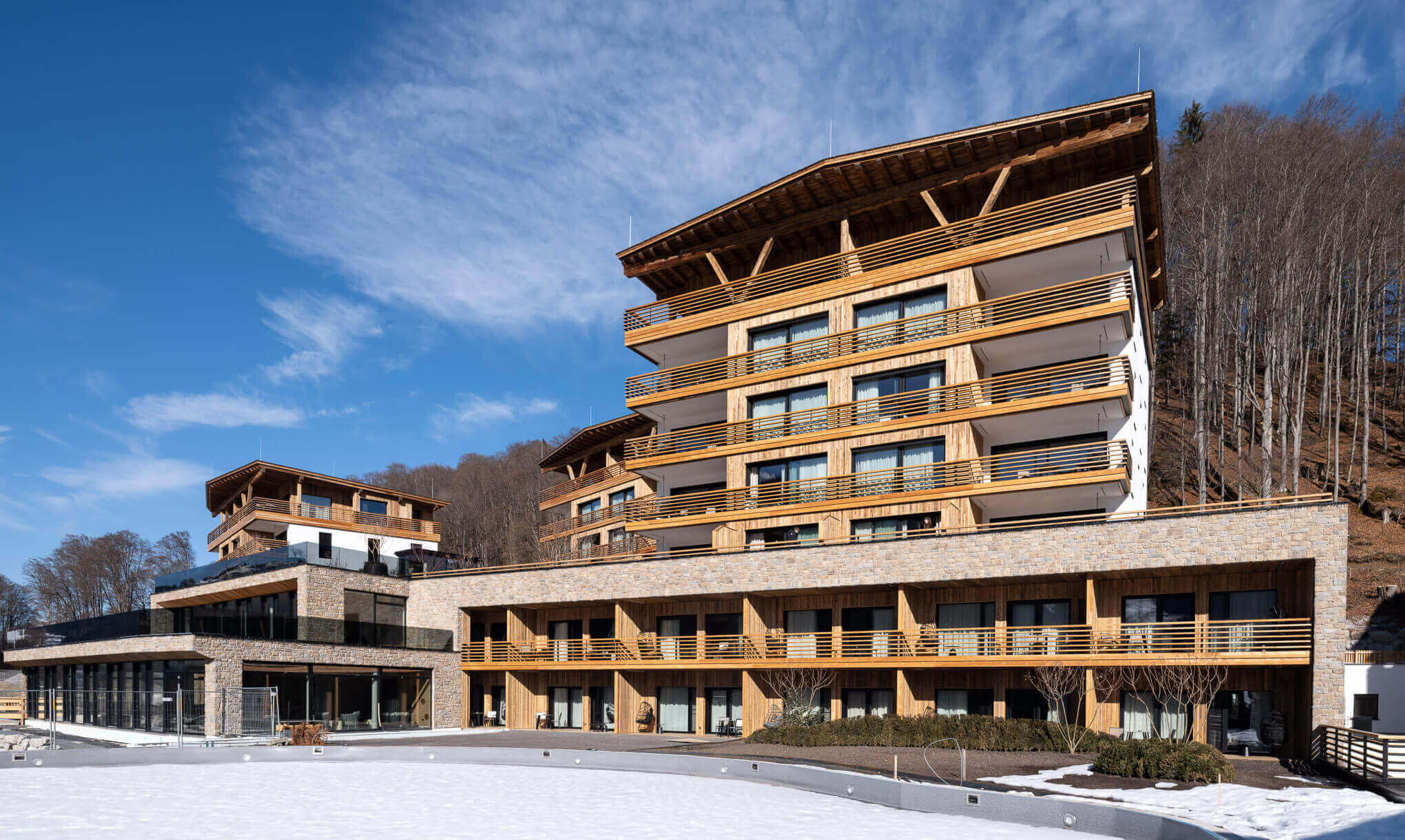In die alpine Landschaft integrierter Zubau mit großzügiger Erlebniswelt.
